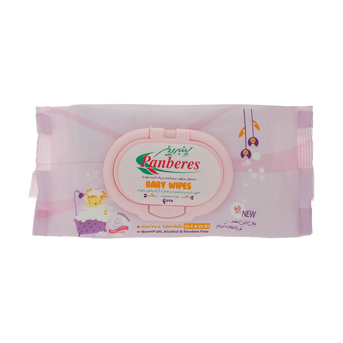 دستمال مرطوب نرم کننده و پاک کننده کودک پنبه ریز بسته ۶۰ عددی
